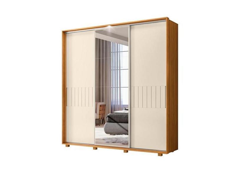 Guarda Roupa Casal Luminare 3 Portas De Correr E Espelho Off White/Car