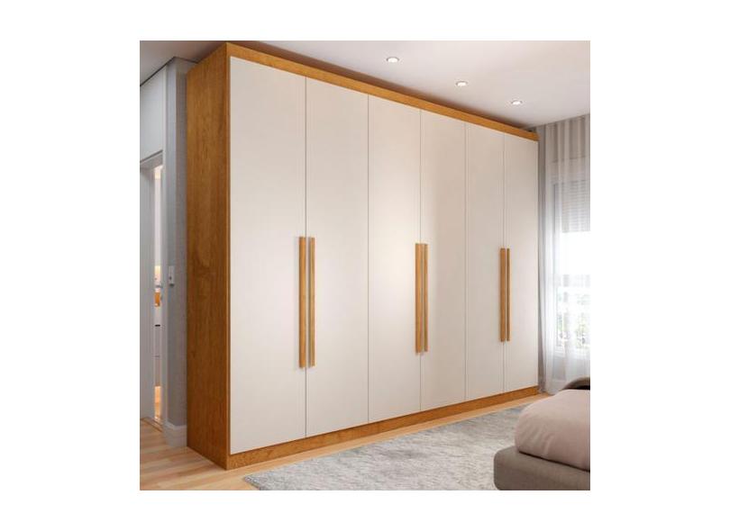 Guarda-Roupa Casal Madalena 6 Portas 4 Gavetas 100% Mdf Peroba/Off Whi