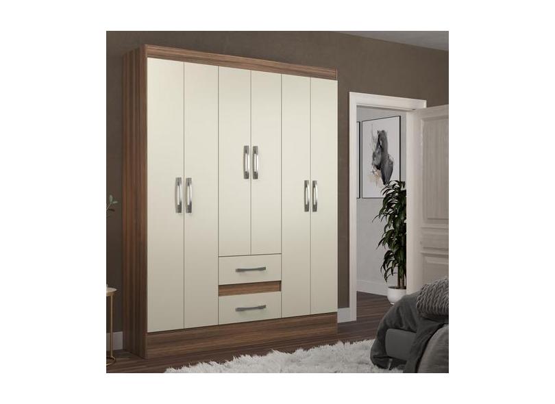 Guarda-Roupa Casal Magistral 6 Portas 2 Gavetas Castanho/Off - Direto