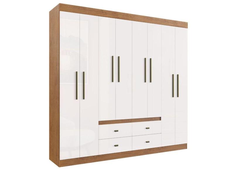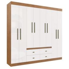 Guarda Roupa Casal Mdp 08 Portas 04 Gavetas Las Vegas Cor: Nogueira Off White