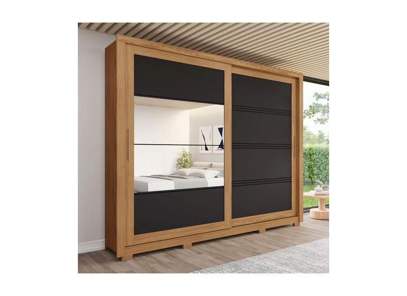 Guarda-Roupa Casal Medelín 2 Portas 4 Gavetas Com Espelho Nature/Preto