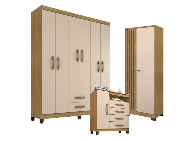 Guarda Roupa Casal Modena com 6 Portas com Cômoda Sapateira Cannes e Armário Multiuso Versatile Carvalho Americano Off White - Incorplac