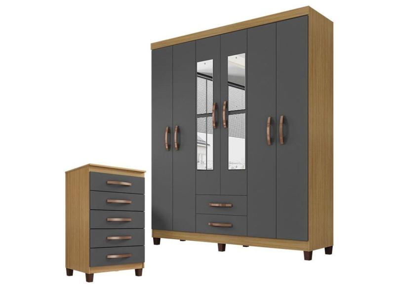 O menor preço encontrado no Brasil para Guarda Roupa Casal Modena com Cômoda Cannes 5 Gavetas Grafite - Incorplac atualmente é R$ 834,30.