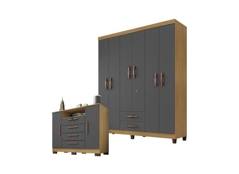 Guarda Roupa Casal Módena Com Cômoda Madri Carvalho Americano Grafite