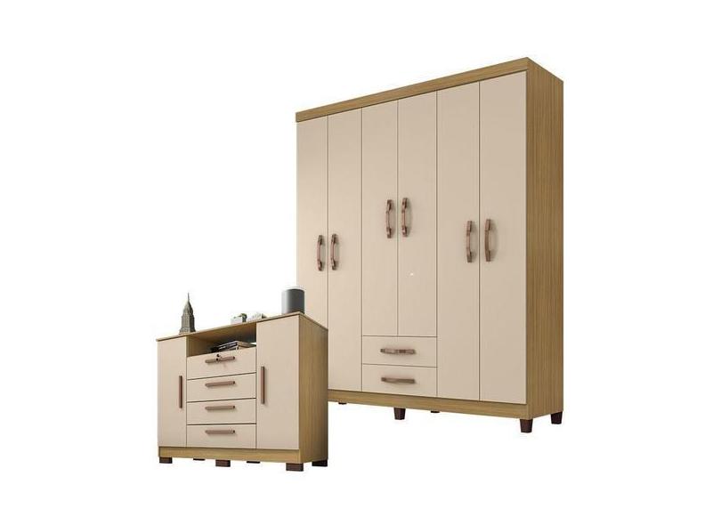 O menor preço encontrado no Brasil para Guarda Roupa Casal Módena Com Cômoda Madri Carvalho Americano Off Whit atualmente é R$ 911,92.