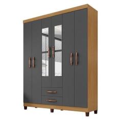 Guarda Roupa Casal Modena com Espelho 6 Portas Carvalho Americano Grafite - Incorplac
