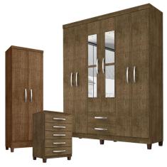 Guarda Roupa Casal Modena Com Espelho 6 Portas Cômoda Cannes 5 Gavetas E Armário Multiuso Egito Malbec