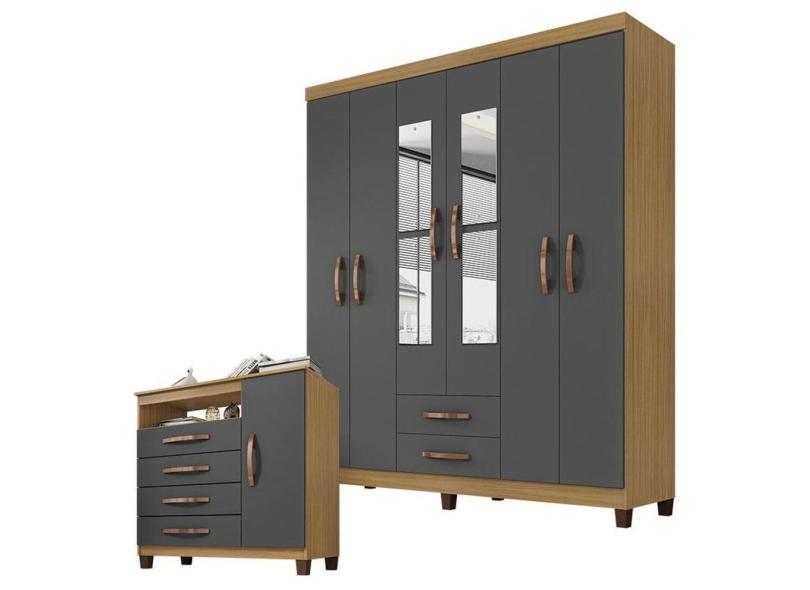 O menor preço encontrado no Brasil para Guarda Roupa Casal Modena com Espelho 6 Portas e Cômoda Sapateira Cannes Carvalho Americano Grafite - Incorplac atualmente é R$ 871,20.
