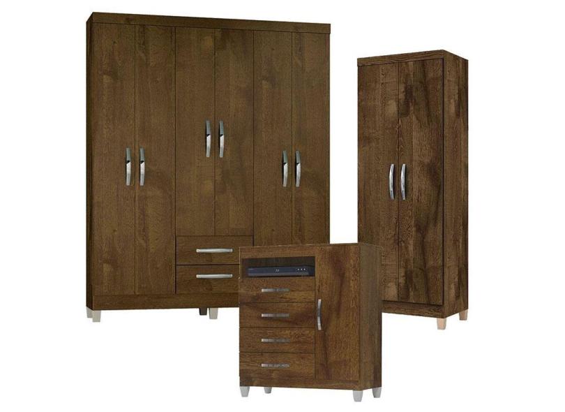 Guarda Roupa Casal Módena E Cômoda Cannes 1 Porta Com Multiuso Egito Malbec - Incorplac