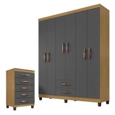 O menor preço encontrado no Brasil para Guarda Roupa Casal Módena e Cômoda Cannes 5 Gavetas Carvalho Americano Grafite - Incorplac atualmente é R$ 715,69.