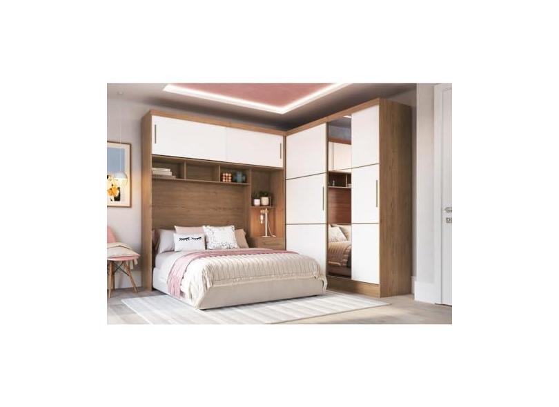 Guarda Roupa Casal Modulado 2 Peças com Espelho Classic Macadâmia/branco Line-duna