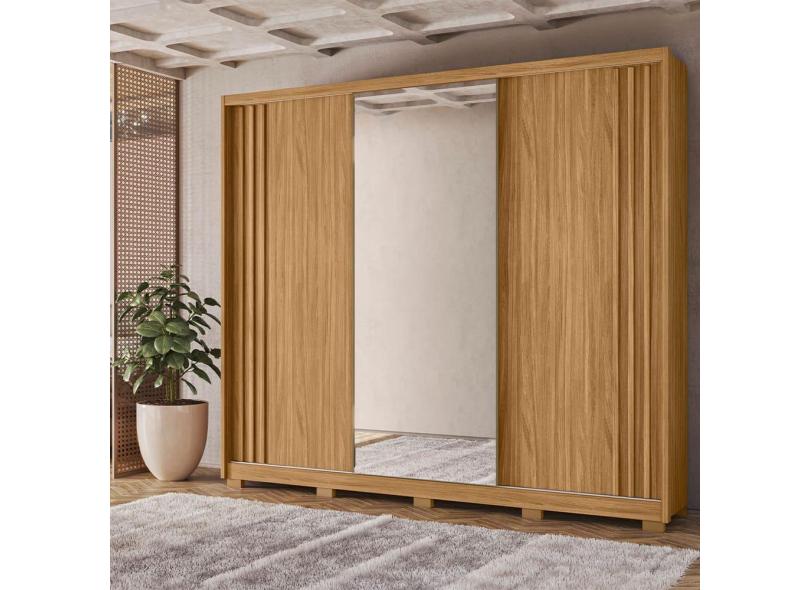 Guarda-roupa Casal Moval Arizona com 3 Portas, 6 Gavetas, 9 Prateleiras, Espelho, Cabideiro e 260 cm de Largura