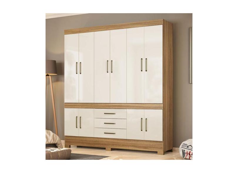 Guarda-Roupa Casal New Murano 10 Portas 3 Gavetas Amêndola/Off-White -