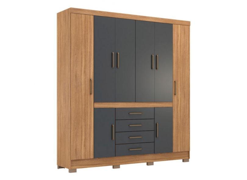 Guarda-Roupa Casal New Realce 8 PT 4 GV Amêndola e Grafito