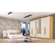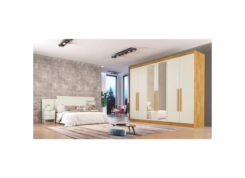Guarda Roupa Casal Oslo 06 Portas 100% Mdf Made Marcs Peroba Off White