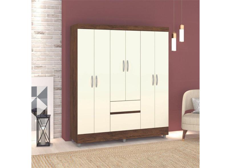 Guarda-Roupa Casal Panama 6 Portas Design Inteligente Marrom/Champanhe
