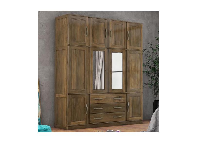 Guarda-Roupa Casal Paris 10 Portas 3 Gavetas Com Espelho Madeira Maciç
