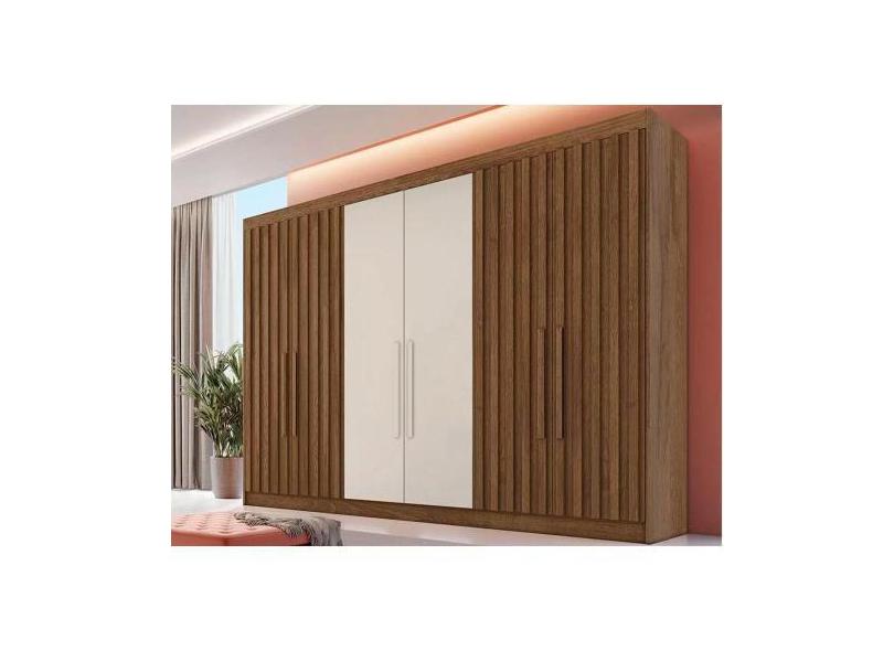 Guarda Roupa Casal Potente 6 Portas c/ 4 Ripados e 6 Gavetas Braúna/Of