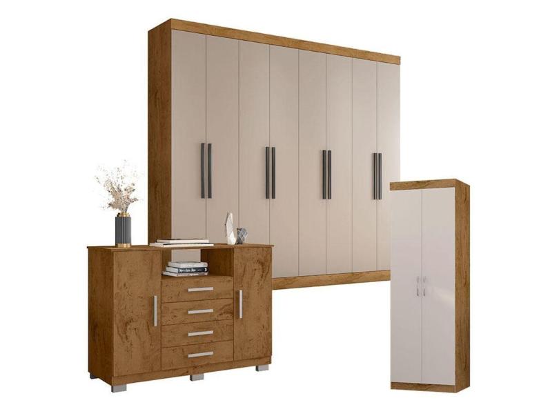 Guarda Roupa Casal Prime 1684 Cômoda 8020 E Multiuso 6020 Freijó Baunilha - Araplac