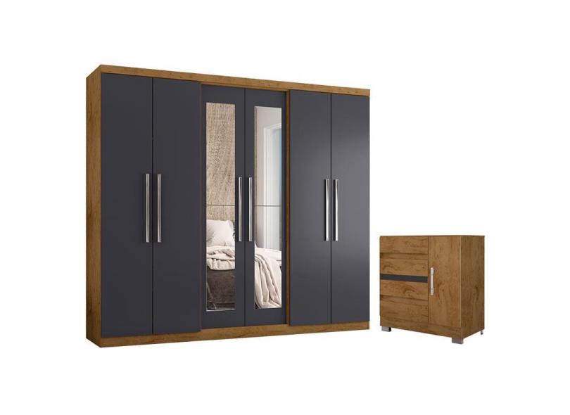 Guarda Roupa Casal Prime 7000 e Cômoda 8000 Freijó Carbono com Pés - Araplac