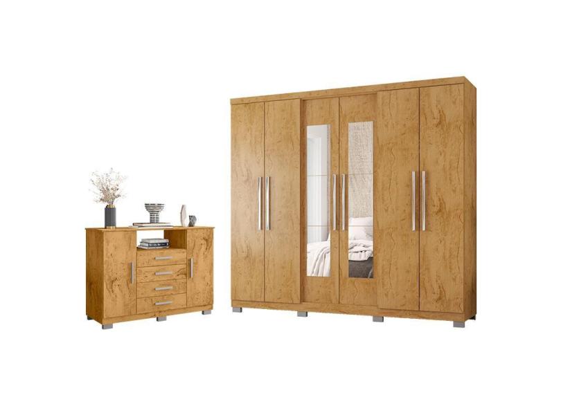 Guarda Roupa Casal Prime 7000 e Cômoda 8020 Freijó com New Pés - Araplac