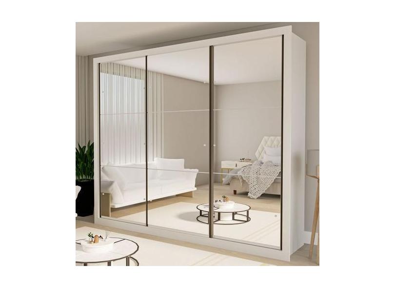 Guarda-Roupa Casal Ravena 3 Portas De Correr Espelhada Branco - Minast