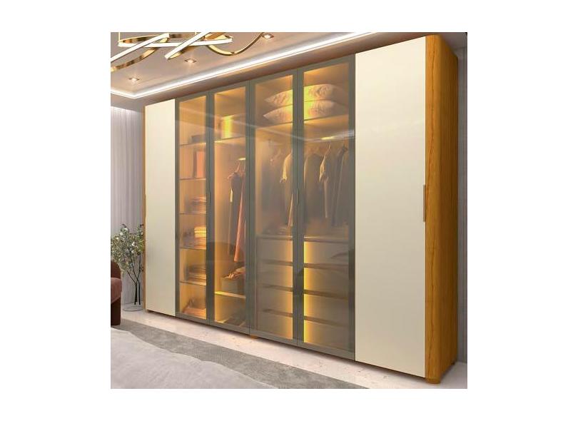 Guarda Roupa Casal Reflecta LED Innova Naturale Off White - Gelius