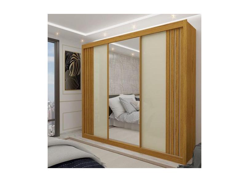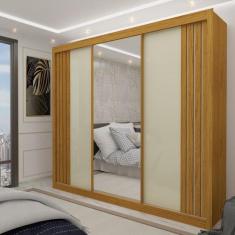 Guarda Roupa Casal Ripado 3 Portas 1 Porta Espelho Santorini Naturale