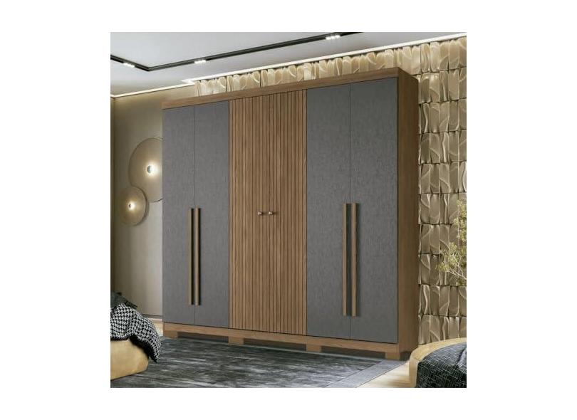 Guarda Roupa Casal Ripado 6 Portas 4 Gavetas com Pés Antony Jatobá/grafite