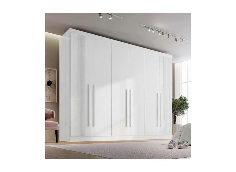 Guarda-roupa Casal Ripado 6 Portas 6 Gavetas Paris Plus D Doro Branco