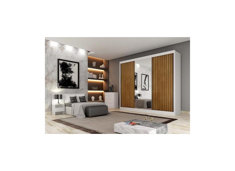 Guarda Roupa Casal Ripado Com Espelho 3 Portas 4 Gavetas - Canastra-Br