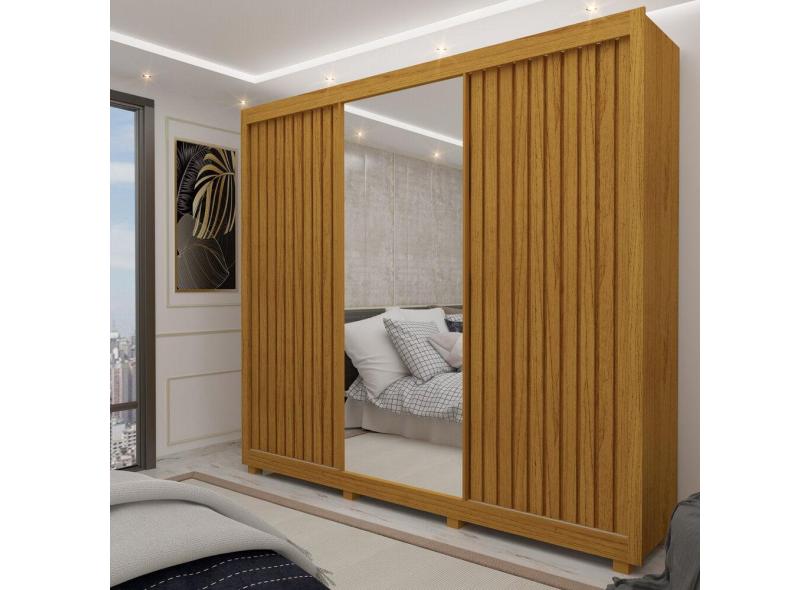 Guarda Roupa Casal Ripado Espelho Com Pés Royale Naturale - Gelius