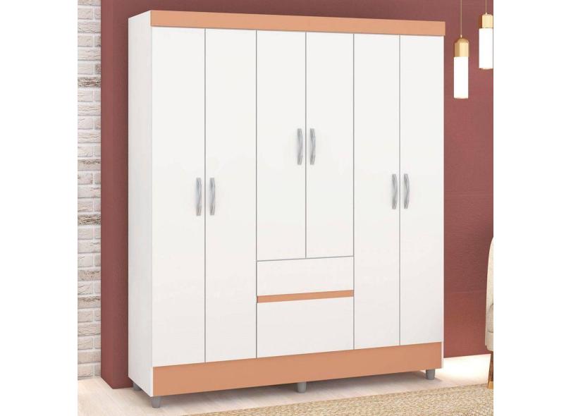 Guarda-Roupa Casal San Diego 6 Portas 2 Gavetas Branco/Camarim - Panorama Móveis