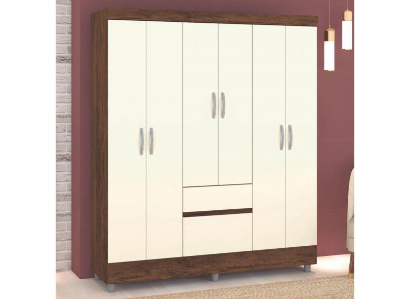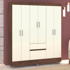 Guarda-Roupa Casal San Diego 6 Portas 2 Gavetas Imbuia/Champanhe - Pnr Móveis