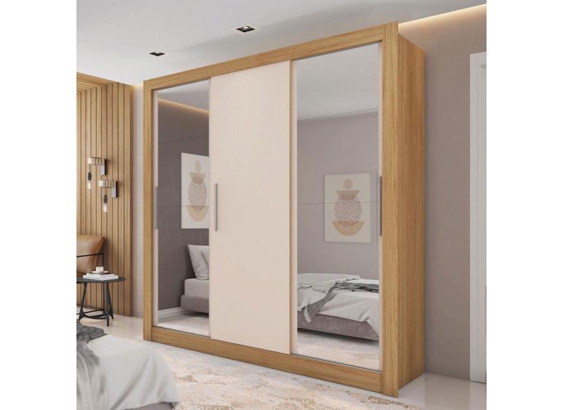 Guarda-Roupa Casal Santiago 3 Portas 4 Gavetas com Espelho Flex 8002200221 Lamina Marrom/Off White/Cacao - Caemmun