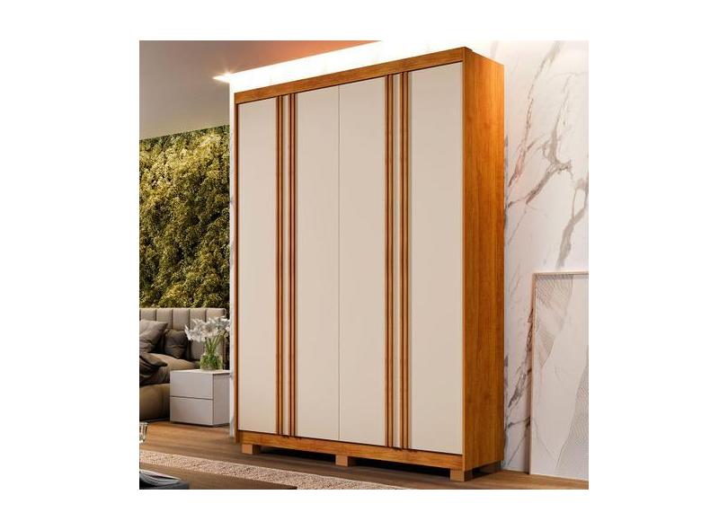 Guarda-Roupa Casal Singapura 4 Portas 3 Gavetas Ripado Cinamomo/Off Wh