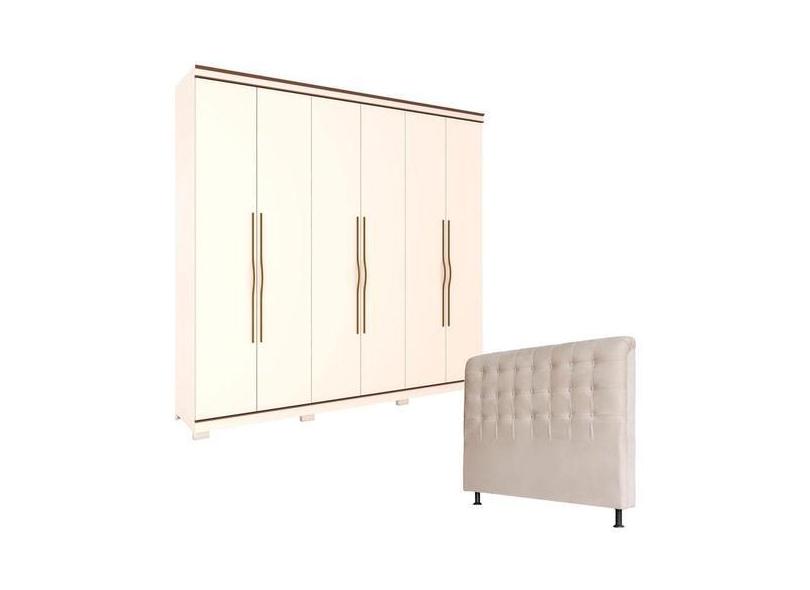 Guarda Roupa Casal Titano Off White Castanho Com Cabeceira Ana 140 Cm