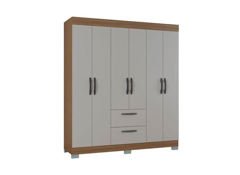 Guarda Roupa Casal Tóquio 6 Portas Castanho Off White - Poquema - Poqu