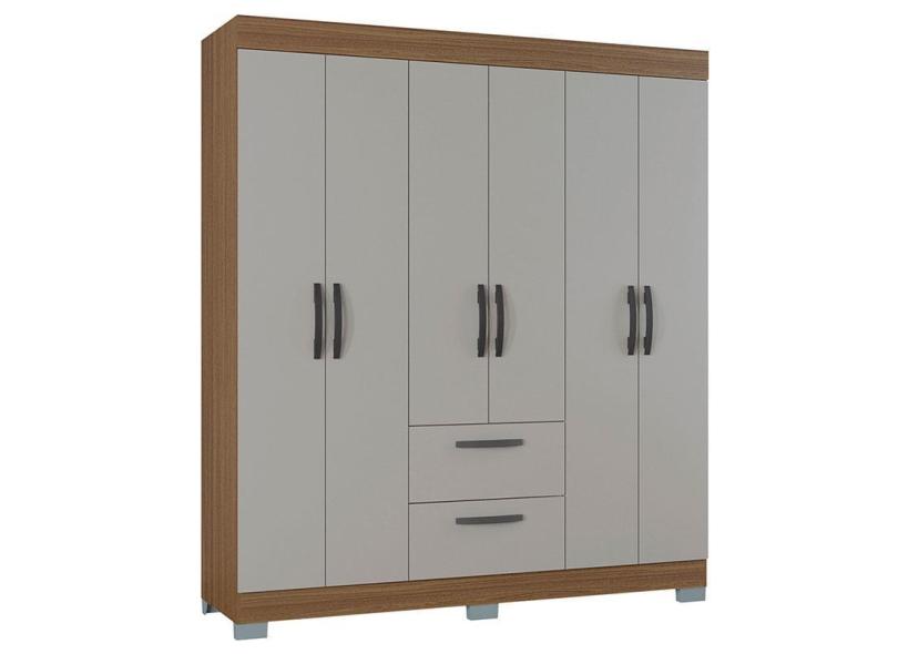 Guarda Roupa Casal Tóquio 6 Portas Castanho Off White - Poquema