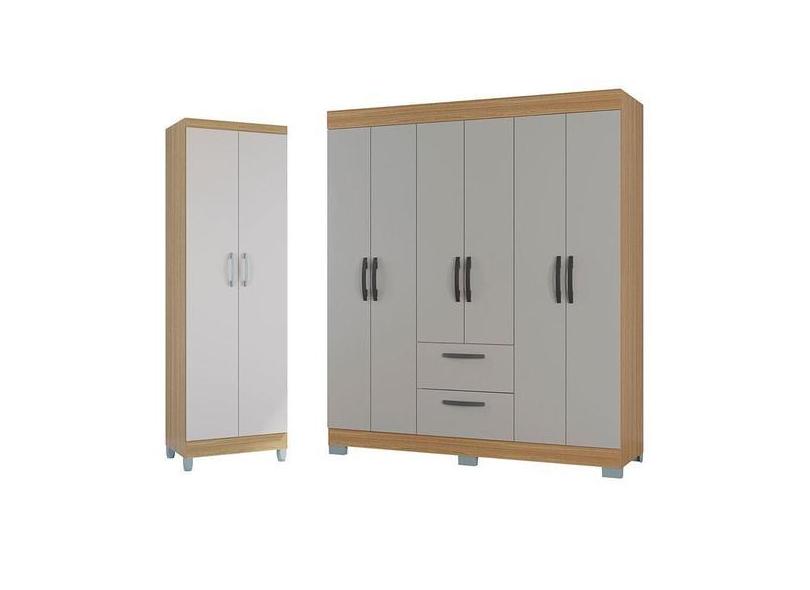 Guarda Roupa Casal Tóquio 6 Portas Com Armário Multiuso 2 Portas Damas