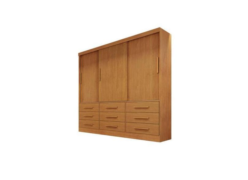 Guarda Roupa Casal Turim 3 Portas Correr 9 Gavetas Puxador Em Madeira