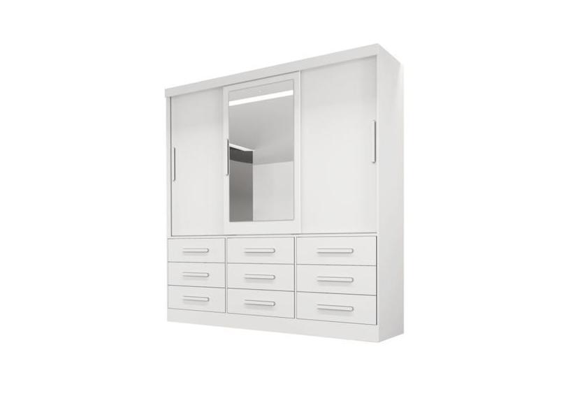 Guarda Roupa Casal Turim Com Espelho 3 Portas Correr 9 Gavetas Puxador