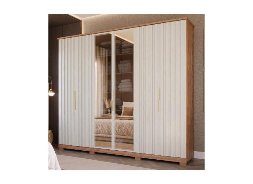 Guarda Roupa Casal Vidro Reflecta 6 Portas 6 Gavetas La Belle Panan Mó