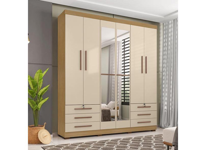 O menor preço encontrado no Brasil para Guarda Roupa Casal Viena 6 Portas 6 Gavetas com Espelho I01 Carvalho Off White - Clique Chique Móveis atualmente é R$ 1.560,70.