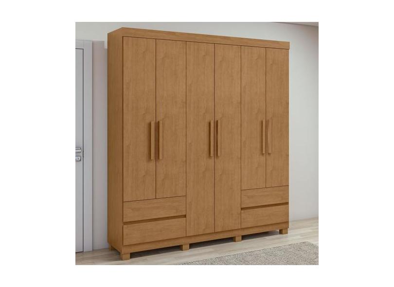 Guarda-Roupa Casal Zeus 6 Portas 4 Gavetas Amêndoa Clean - Móveis Lopa