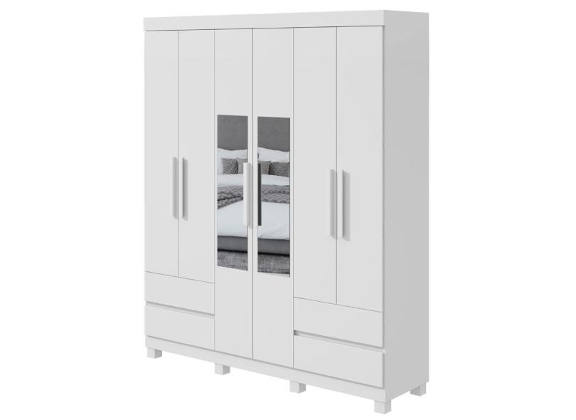 Guarda-roupa Casal Zeus 6 Portas 4 Gavetas E Espelho Branco