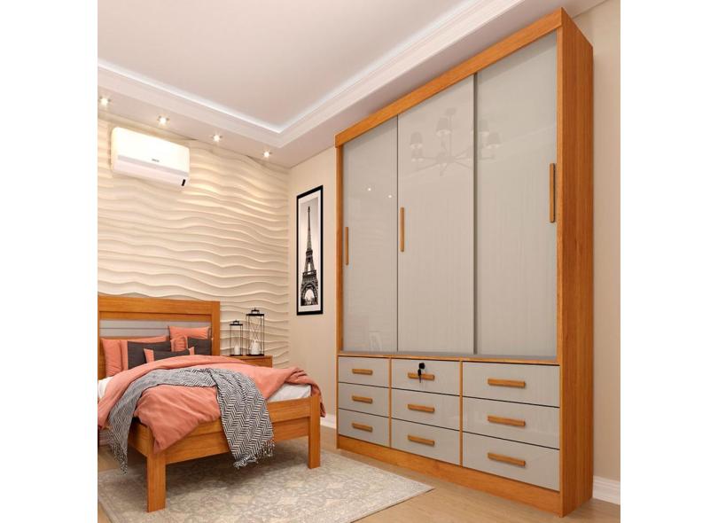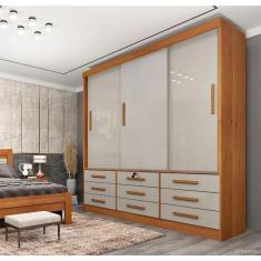 Guarda-roupa Chicago 3 Portas 9 Gavetas Cinamomo/off White - Tcil Móveis