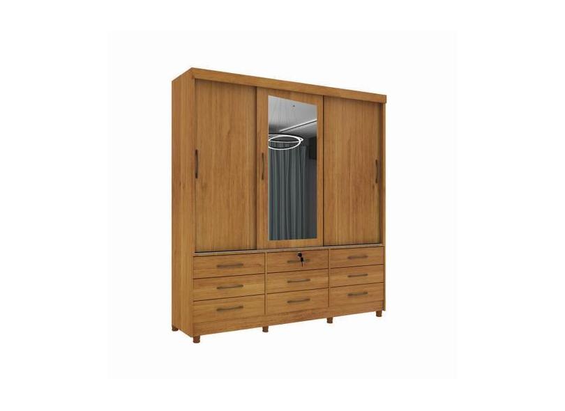 Guarda Roupa Chicago 3 Portas 9 Gavetas Com Espelho E Pés Tcil - Tcil