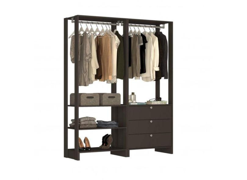Guarda-Roupa Closet 2 Peças com 2 Cabideiros 3 Gavetas e 4 Nichos Yes Nova Mobile Grafite Intenso