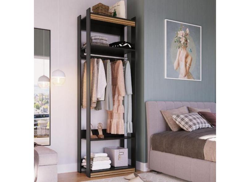 Guarda Roupa Closet Cabideiro Amber Preto Fosco/brise